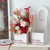 鉢植えだけでなく、花を入れた花瓶をキャリアとして使用したり、フローラルフォームを使った生花、せっけんの花、造花のアレンジも可能です。 側面が曲線でデザインされ、花がよく見えるように製作されました。