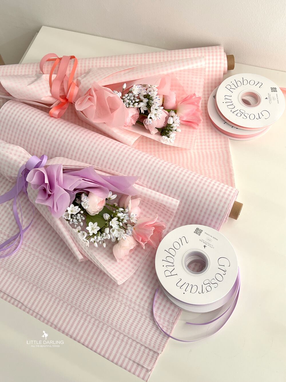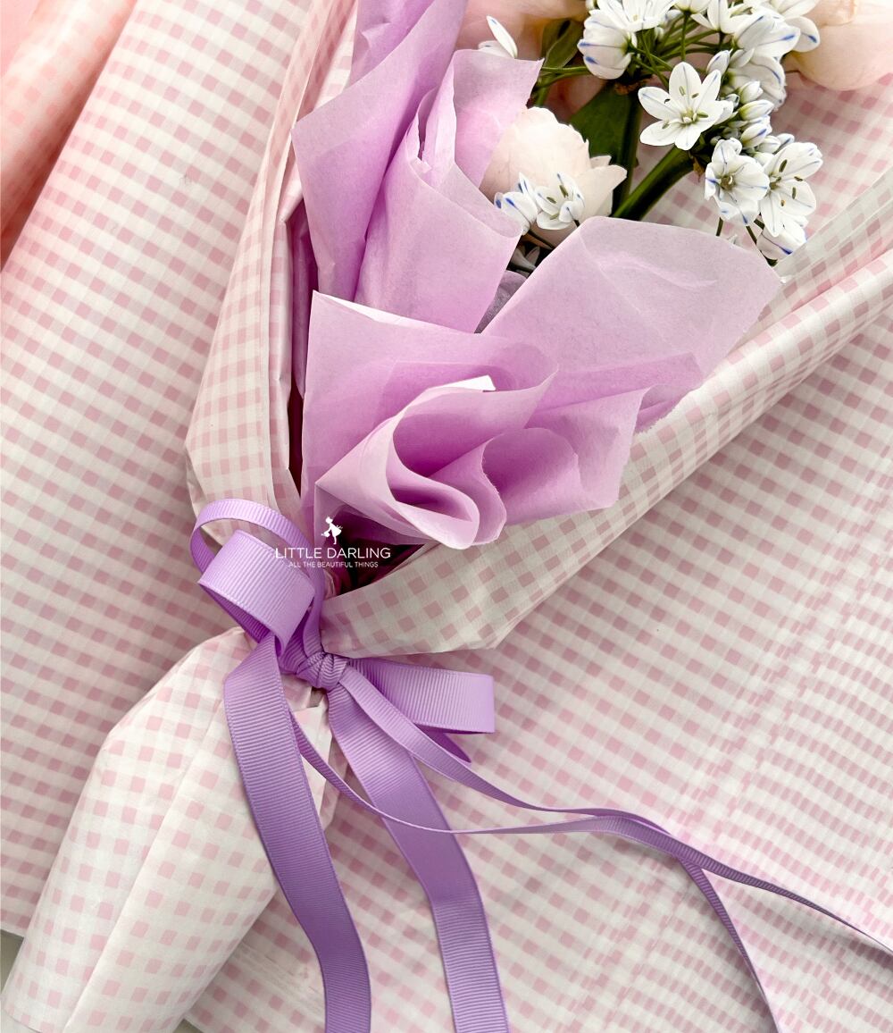 コーテッドペーパーのラインは片面が色画紙の感じで片面がつややかなコーティング材質の色画紙です。 ですから、もう少し硬さを求めるガーデニング道具の包装や鉢植えの包装に適した色画紙です。 もちろん、お花のラッピングやギフトラッピングにも最適です。 写真のように活用すれば誰にも良いプレゼントになるでしょう。